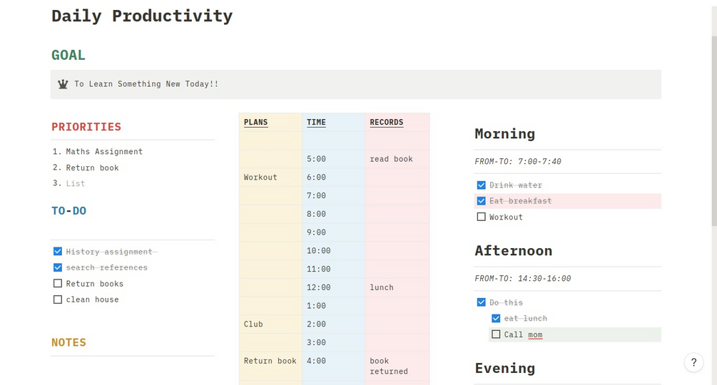 Notion Daily Planner